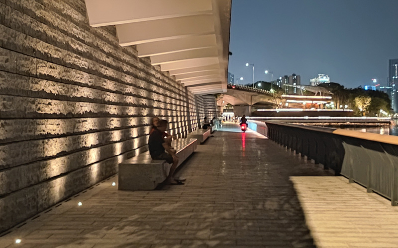 夜景燈光與配套設(shè)施的完善,吸引了更多市民和游客,帶動了周邊商業(yè)發(fā)展,形成“水岸+文化”新產(chǎn)業(yè),為區(qū)域經(jīng)濟(jì)注入新活力。 ?