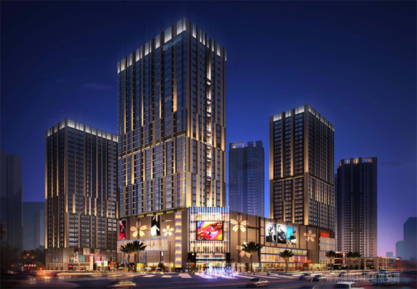 建筑裙樓外圍的燈光從觀看和感受入手,以體量為單位,強調大面積光感給人和車流的視覺沖擊,從視覺的角度吸引消費群體。