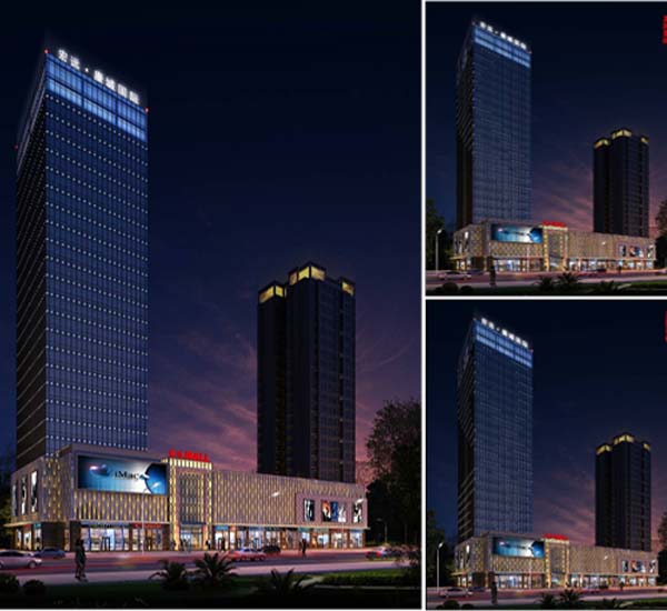 整體燈光以簡潔大氣為主,裙樓商業(yè)以表現(xiàn)熱鬧而雅致的氛圍為主,用小壁燈和內(nèi)透搭配表達,主樓立面用LED點光展現(xiàn),點光安裝于室內(nèi),見光不見燈:建筑頂部微微透出的燈光搭配著LED發(fā)光字,與航空障礙燈共同闡述遠視的效果,整體燈光輕靈飄逸,簡潔優(yōu)雅。