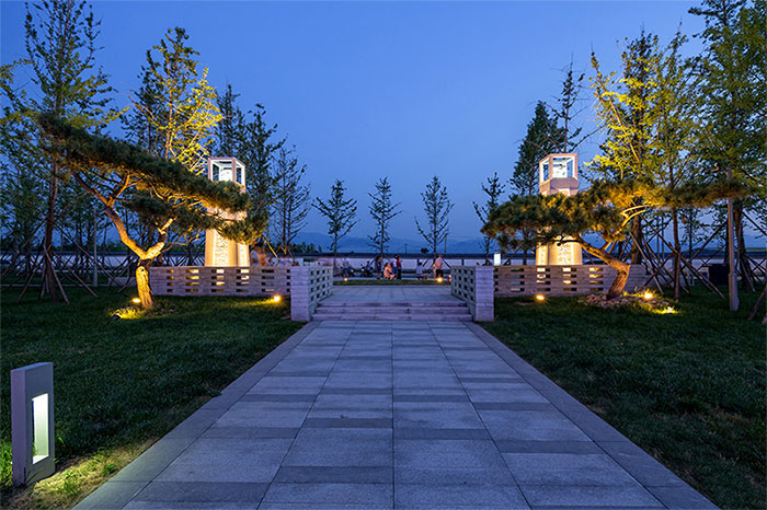 一、在所有的景觀中,水景燈光是夜間照明的重要部分。夜間水景是燈光照射下的廣場(chǎng)景觀中最具魔幻的部分,可以在水體邊緣布置光線柔和的庭院燈,也可利用燈光的透射將岸邊樹木的倒影映射到水面上,從而獲得奇妙的水景效果。