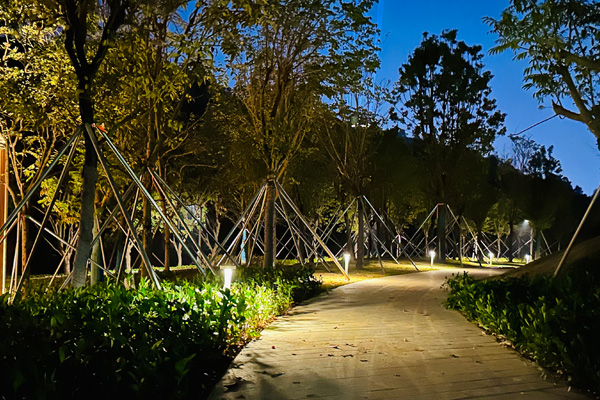 園林中樹(shù)木照明在選擇燈具時(shí),需要考慮燈具的形狀、大小、顏色和光線(xiàn)強(qiáng)度等因素。對(duì)于樹(shù)木的照明,通常選用投光燈或洗墻燈等燈具,以將光線(xiàn)投射到樹(shù)木的葉片和枝干上。同時(shí)還需要根據(jù)樹(shù)木的高度和形態(tài)來(lái)選擇合適的燈具高度和安裝位置,以確保光線(xiàn)能夠有效地照射到樹(shù)木上。燈光顏色也是照明設(shè)計(jì)中需要考慮的因素之一。不同的燈光顏色會(huì)給人們帶來(lái)不同的感受和氛圍。對(duì)于樹(shù)木的照明,通常選用暖色調(diào)的燈光,如黃色或橙色等,以營(yíng)造溫馨、舒適的氛圍。同時(shí),還可以通過(guò)調(diào)整燈光顏色的亮度和飽和度等參數(shù)來(lái)達(dá)到不同的效果。另外還要選擇合適的燈光強(qiáng)度.