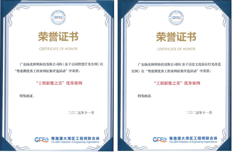 2025年11月30日,由中國工程師聯(lián)合體指導(dǎo),粵港澳大灣區(qū)工程師聯(lián)合體、中國科技發(fā)展基金會、香港工程院等單位聯(lián)合舉辦的第四界大灣區(qū)工程師論壇及大灣區(qū)優(yōu)秀工程頒獎儀式在廣州華南理工大學(xué)國際校區(qū)隆重舉行。在此次評選中,揚(yáng)光照明憑借“東莞記憶首開區(qū)歷史文化街區(qū)燈光工程項(xiàng)目”及“東莞科學(xué)公園智慧燈光項(xiàng)目”雙雙榮獲“工程影像之美”優(yōu)秀案例稱號,彰顯企業(yè)在照明工程領(lǐng)域卓越的技術(shù)實(shí)力與美學(xué)追求。